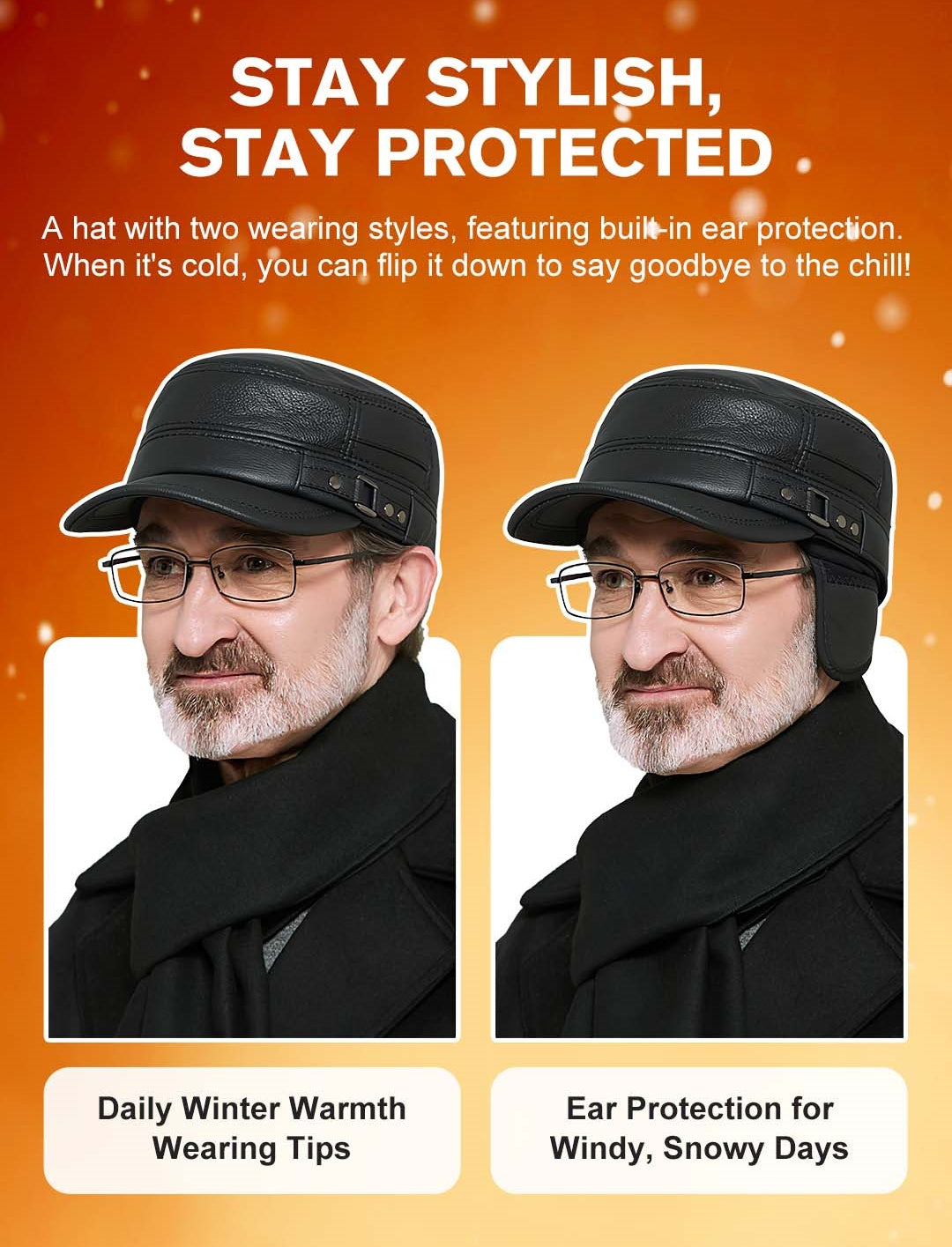 🔥Black Friday Sales - 49% OFF🔥PU Leather Flat Top Warm Baseball Cap